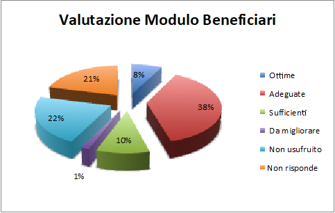 Anche la valutazione sulla modulistica è di massima positiva, con poche critiche fatte: infatti il Modulo di adesione riceve indicazioni di miglioramento solo dal 3% di chi risponde (anche se si evidenzia che il 24% non risponde), il Modulo per gli Anticipi dal 4% (il 42% però non ne ha usufruito e il 19% non risponde), il Modulo per la nomina dei Beneficiari dall’1% (da considerare che il 22% non ne ha usufruito e il 21% non risponde).